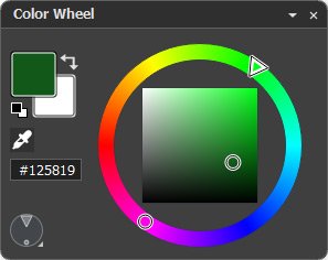 You can change the current color using the Color Wheel panel. Most of the panel is occupied by a spectral color ring that allows you to easily fine-tune color settings and select perfect color combinations.